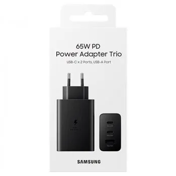 Power adapter trio 65W 3port: USB-C(PD3.0 PPSMax65W), USB-C(PD 3.0 PPS Max25), USB-A(Max15W) Super fast
