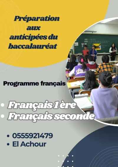 Je suis une professeure d'anglais je donne des cours en se déplaçant à domicile. Les cours concerne: • préparation pour le BAC programme Algérien • préparation pour le BAC programm