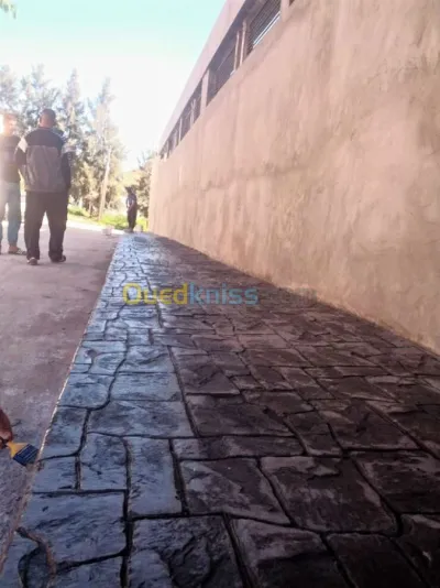 béton imprimé Cette technique consiste à appliquer une empreinte souple sur un béton encore frais. Elle permet de reproduire, sur de grandes surfaces, tous type de matériaux tels que d