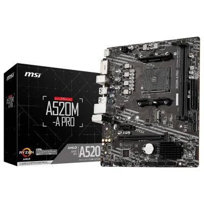 Kit CARTE MERE MSI A520M-A PRO AMD DDR4 HDMI/DVI/USB 3.0 X4/USB 2.0 X2 (Ryzen AM4) plus Processeur Ryzen 5 3400G Box