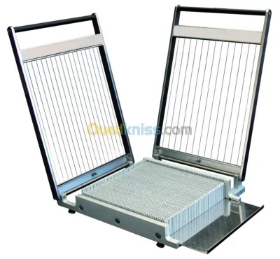 GUITARE, découpeuse pour pâtisserie, est formée d’une solide base en aluminium et d’un cadre en acier inox permettant de tailler les chocolats-glacés, l’abaisse de pâte, ganache