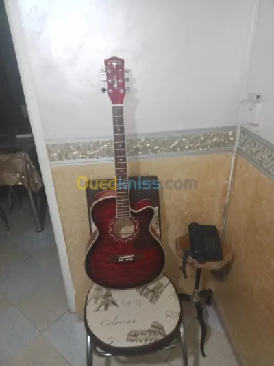Je mets en vente une guitare folk HARPER professionnel utilisé couleur rouge et noir venante de la Tunisie avec la pochette.