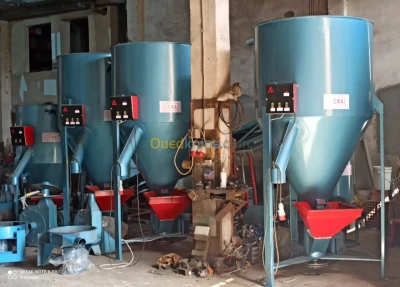 Fabrication des unités d'aliments de bétail et volailles farine et granulés L'unité se compose de : -Mélangeur vertical de capacité 1t -melangeur horizontal 2000L -Broyeur a mart