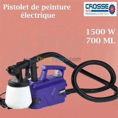PISTOLET DE PEINTURE ELECTRIQUE 1500W Puissance 1500W voltage : 230V 50Hz Réservoir peinture : 700ml Max. viscosité : 60 din/sec Ajustage Ø 2.6mm المزيد من �