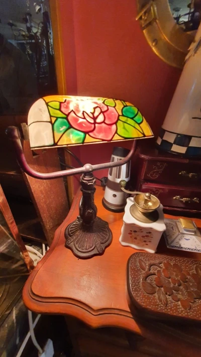 VENDU Petite lampe à poser de bureau, lampe de Banquier Vintage Tiffany Style Abat-jour en pâte de verre Son réflecteur pivotant prend la forme d'un vitrail à motifs de fleurs fleurs su