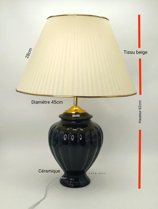 Lampe de salon grand modèle Apportez une touche d’élégance à votre intérieur avec cette grande lampe de salon. Son pied en céramique noire brillante au design galbé s’associe par