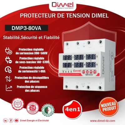 📍 متوفر الآن chez Dimel Énergie & Électricité ✨ Caractéristiques principales : Protection de tension (surtension / sous-tension) Protection de courant jusqu’à 80A Prote