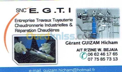 Salam alikom Nous somme une Entreprise industriel spécialisée au Calorifuge et chaudronnerie *Protection de la tuyauterie industriel chaude et froide. *Soudeur tig inox