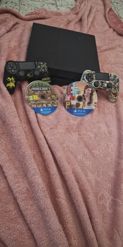 PS4 fat état 9/10 ✅ : 1-PS4 model 1116 + version 12.02 2-Stockage 500 gb 3-yji m3aha 2 manettes ps4 et ps5 4-PS4 n9ya rebi bark 5-W bayna yjiw m3aha les câbles ta3ha 6- wji m3aha CD fi