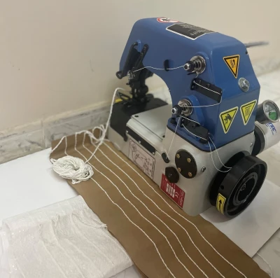 Pour la couture simple des sacs à gueule ouverte de diverses matières: papier kraft, polyéthylène tissé, jute, coton, matières composites etc. - Modèle compact, Vitesse réglable et F