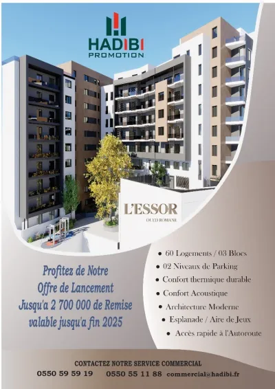 C’est le moment d’investir dans votre avenir ! 🏡 Hadibi Promotion Immobilière vous ouvre les portes de votre futur chez-vous avec une remise exceptionnelle sur une sélection d'appa