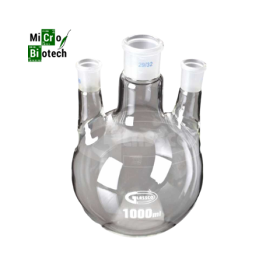 Le Ballon fond rond tricol rodé Glassco présente une construction en verre de haute qualité, garantissant une excellente résistance aux produits chimiques et une durabilité accrue. Les