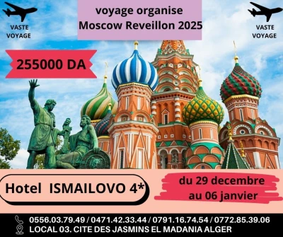 Non Stop Travel vous propose un Voyage Organisé a MOSCOU à partir de 239 000 DA LES DATES DE DEPART : er départ : 28/12/2025 au 05/01/2026 __ L'OFFRE COMPREND