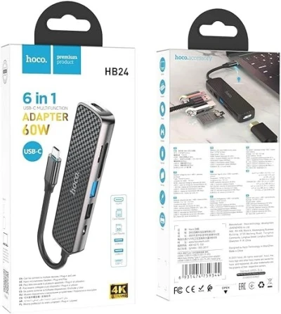 Adaptateur HUB USB Type-C 6 EN 1 USB Type-C to HDMI / 2 USB 3.0 / SD / TF / USB-C Points forts: • HUB USB C 6 EN 1 : USB-C to HDMI / 2 USB 3.0 / SD / TF / USB-C • Matériau de haute q