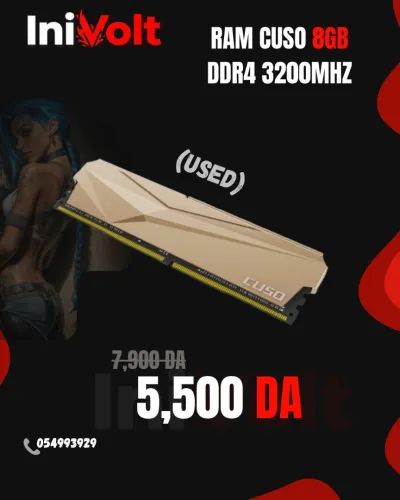 RAM CUSO 8GB DDR4 3200MHz 💵 Prix : 5.500 DA 🧩 Caractéristiques principales : • Capacité : 8GB • Type : DDR4 • Fréquence : 3200 MHz • RGB : ❌ Non RGB • Compatibilité :