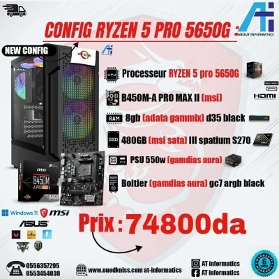 R5 5650G PRO B450M-A PRO MAX II MSI RAM 8GB DDR 4 ADATA XPG SSD 480GB MSI PSU 550W