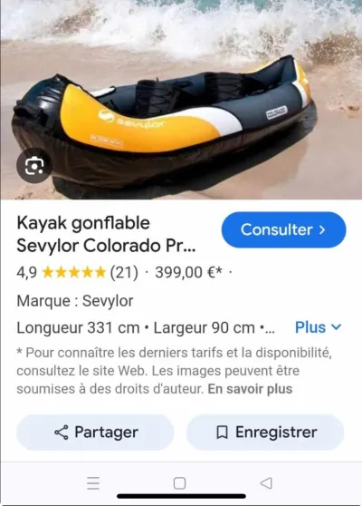 A vendre kayak 2 places avec rames très bon état, presque neuf, prix demandé 8million5000 . Veuillez appeler de 09h00 au 21h00, svp