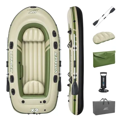 Comprend deux rames de 122 cm. Comprend 1 pompe manuelle à haut rendement. 244x117x41 cm. Capacité : 3 personnes. Poids maximal supporté : 200 kg.