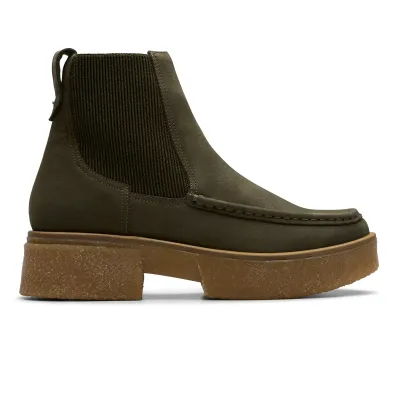 • Tige en nubuck vert foncé haut de gamme • Panneau latéral élastique et languette au talon pour l’enfiler et l’enlever facilement • La chaussette Contour Cushion en cuir amovib