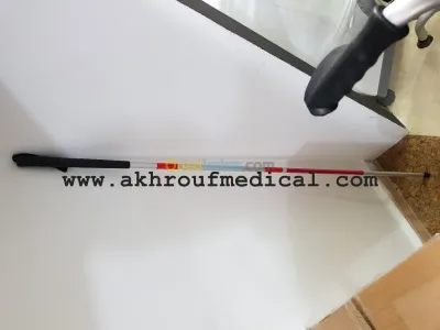 Canne pliante pour aveugle, en 4 parties, tubes alu gainé plastique Ø 13 mm sous la poignée Ø 13 mm sous la poignée Longueur 110 cm �