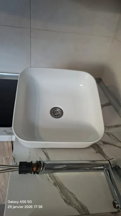 Vasque de salle de bain en bon état, propre et fonctionnelle. Idéale pour WC, petite salle de bain ou studio. 📏 Dimensions approximatives : • Longueur : ~40 cm • Largeur : ~20 cm �