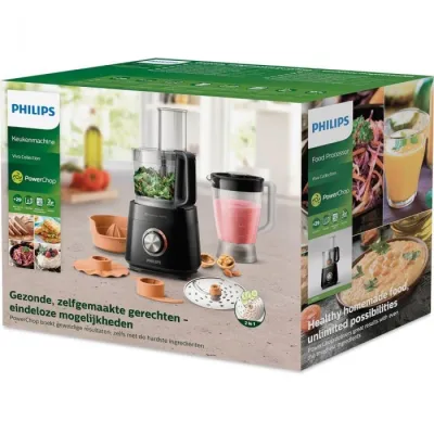 -9 ACCESSOIRES : pour réaliser toutes vos préparations culinaires. Bol 3L avec couteau hachoir, blender 1,25L, mini hachoir, 3 disques pour râper trancher (fin et épais), disque émulsio