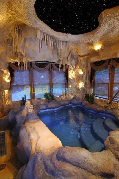 conception et réalisation de cascade d'eau en fausse roche et fausse pierre clef en main déplacement pour les 58 wilayas possible