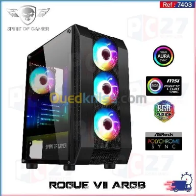 BOITIER PC GAMER SPIRIT OF GAMER ROGUE VII ARGB Nom de la boutique: Pc27 Adresse: mostaganem Heures de travail: 24/24 لي حاب يشري يبعث نيميرو نتاعو فال