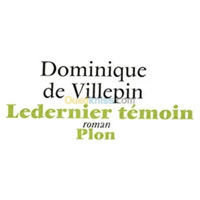 Titre : Le dernier témoin, Roman Auteur : Villepin, Dominique de Editeur : Plon Année : 2009 Théme : Langues Et Littérature Sous-théme : Littérature Française ISBN : 9782259207683