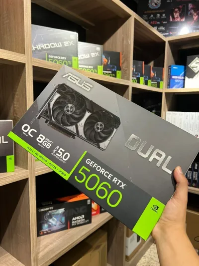 Model DUAL-RTX5060-O8G Moteur graphique NVIDIA® GeForce RTX™ 5060 AI Performance 623 TOPs Bus standard PCI Express 5.0 OpenGL OpenGL®4.6 Mémoire vidéo 8GB GDDR7 Horloge moteur OC mode
