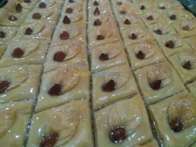Je fais des gâteaux orientaux et des salés sur commande: gâteau Oriental avec : Amande:120da, cacahouètes :70da Gâteaux secs selon le modèle à partir de 30da la pièce Les salés