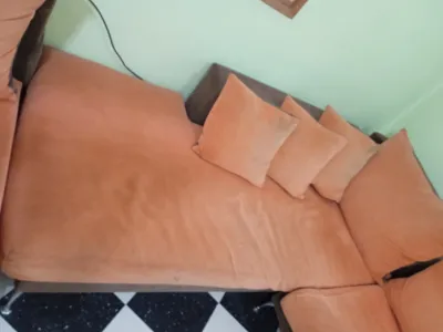 un canapé à 6 places / en forme L / usé à l'extérieur et la carcasse est intacte / couleur orange