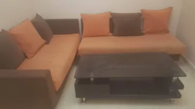 bonsoir a tous . je vend un salon en L couleur Orange et Crème , plus un pouf et avec une table de basse comme sur la photo pour les personnes intéresser ,laisser moi un message sur Ouedk
