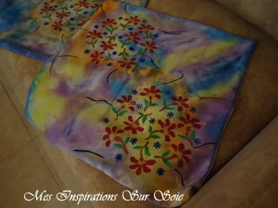 Salem aleykoum, azul, bonjour, Pour le décor de votre salon ou toute autre chambre, je vous propose ces jolis coussins en soie entièrement peints à la main avec beaucoup d'amour. Le fond