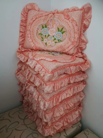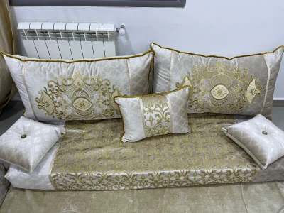 Salam 3alaykoum, Vends ELHAF rouge et marron comme neufs avec leurs coussins brodés et réversible côté satin. 6 ELHAF et coussins marron + 5 ELHAF et coussins rouge. Lot de 8 coussins