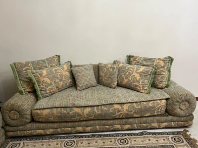 Choura en très bon état fait sur mesure pour 3 canapées avec 9 coussins remplis