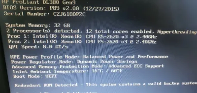 Serveur rackable hp proliant DL380 G9 cpu bi processeur xeon e5 2620 v3 2.40ghz Ram 2x16G ECC alimentation 2x800w Sans disque