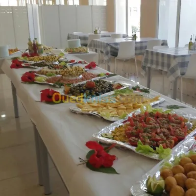 On est spécialisé dans le service traiteur Servir de toutes sortes de repas :coffret repas -buffet -repas servi-coctail dînatoire -collasion- pause café -pause déjeuner -la gesti