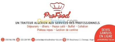 Depuis 2010, Nos chefs cuisinier prennent toute vos commande et préparent toute sorte plat a des prix imbattable avec couverture optimale nous vius livrons sur la zone grand Alger Pour