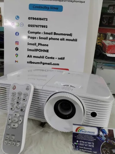 Data show optoma en trés bonne état Parfet pour les prof, qualité d'image Hd Trés bon image même sur la lumière Avec pochette d'origine et cablage جهاز عرض في حالة مم