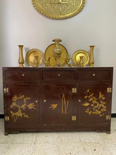 Meuble Chinois 1980, en bois laqué avec décors (20eme siècle)