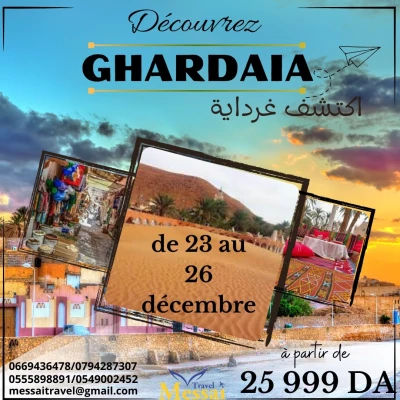 🌟 Voyage à Ghardaïa - 23 au 26 décembre 2024 avec MESSAI TRAVEL 🌟 🎒 Envie de découvrir la magie de Ghardaïa ? Messai Travel vous propose un séjour inoubliable dans cette magn