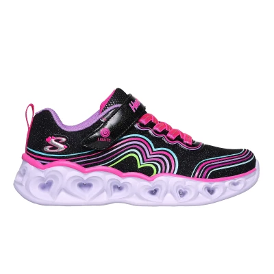 Étincelez et brillez de mille feux avec la Skechers Heart Lights® – Retro Hearts. Ce modèle lumineux est doté d’une tige en maille étincelante avec un cœur arc-en-ciel imprimé en