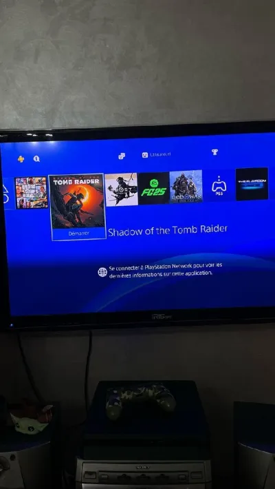 PS4 slim 500g cloné 2 manette original FIH 5 jeux (God of war.. tomb raider..FIFA 25..gta5.ghost of Tsushima) Ymchi Bein mayskhon maydir lhas Livraison disponible sur alger