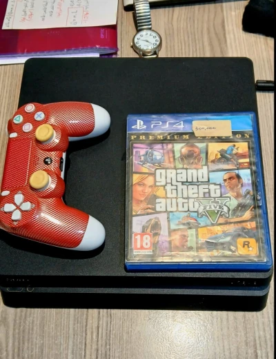 Ps4 slim 1tb bonne etat avec 2 manette fonctionne bien Version 12.52 avec compte gta5 Vente seulement disponible a skikda