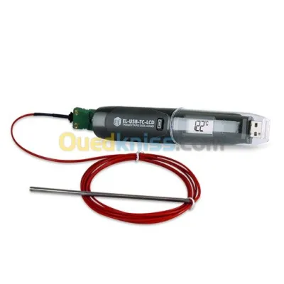 ENREGISTREUR DE TEMPERATURE avec USB et écran LCD Cet enregistreur de données autonome mesure et stocke plus de 32 000 relevés de température provenant d’un thermocouple de type J, K o