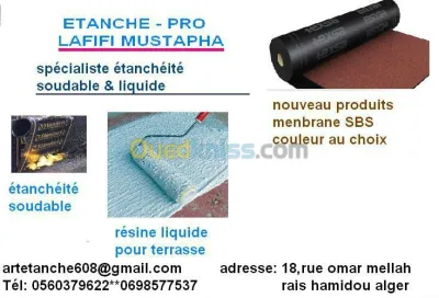 Entreprise Spécialisée Travaux D’étanchéité Résine et L’étanchéité Soudable LAFIFI MUSTAPHA Siège social / N° 18, Rue Omar