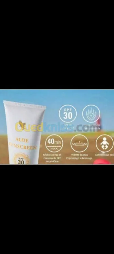 Ecran solaire aloès Ce soin solaire à haute protection SPF30, Protège la peau des effets néfastes du soleil et viellissement,sa formulation légère et hydratante pénètre facilement