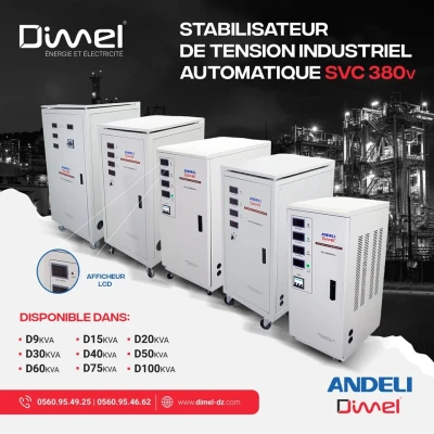 nouvelle arrivage ✅ stabilisateur de tension 380V ANDELI DIMEL 👉9 kva ===>75 ===>100 kVA 380v SVC / Bobine ..... afficheurs numériques 🟢 Un service d'étude et d'installation
