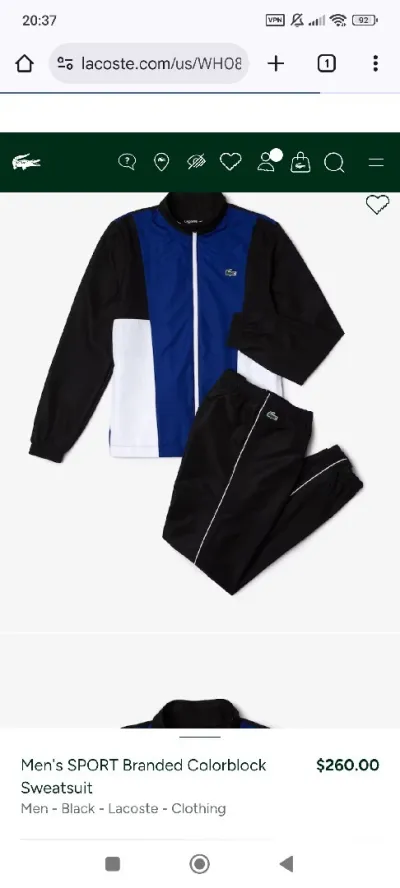 J'ai 3 pièce d'ensembles survêtement Lacoste original avec matricule made in Tunisia taille 9-4xl